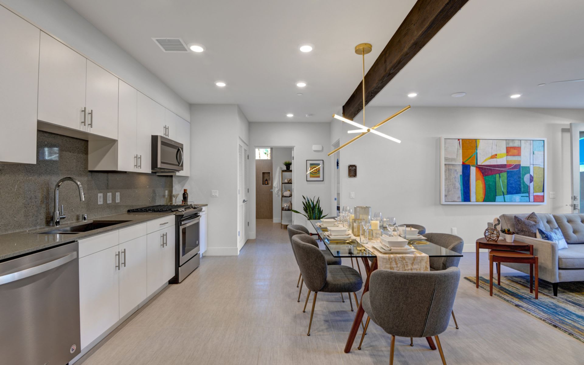 This gated development features 2 floor-plans; a 1500 SF 2 bedroom, 2.5 bath & a 1200 SF 2 bedroom, 2 bath. Both plans feature 9’ ceilings, clerestory windows, social kitchens, expansive outdoor spaces and much more! Standard fixture package features the brand names of Whirlpool, Grohe, Kohler and designer lighting options.
