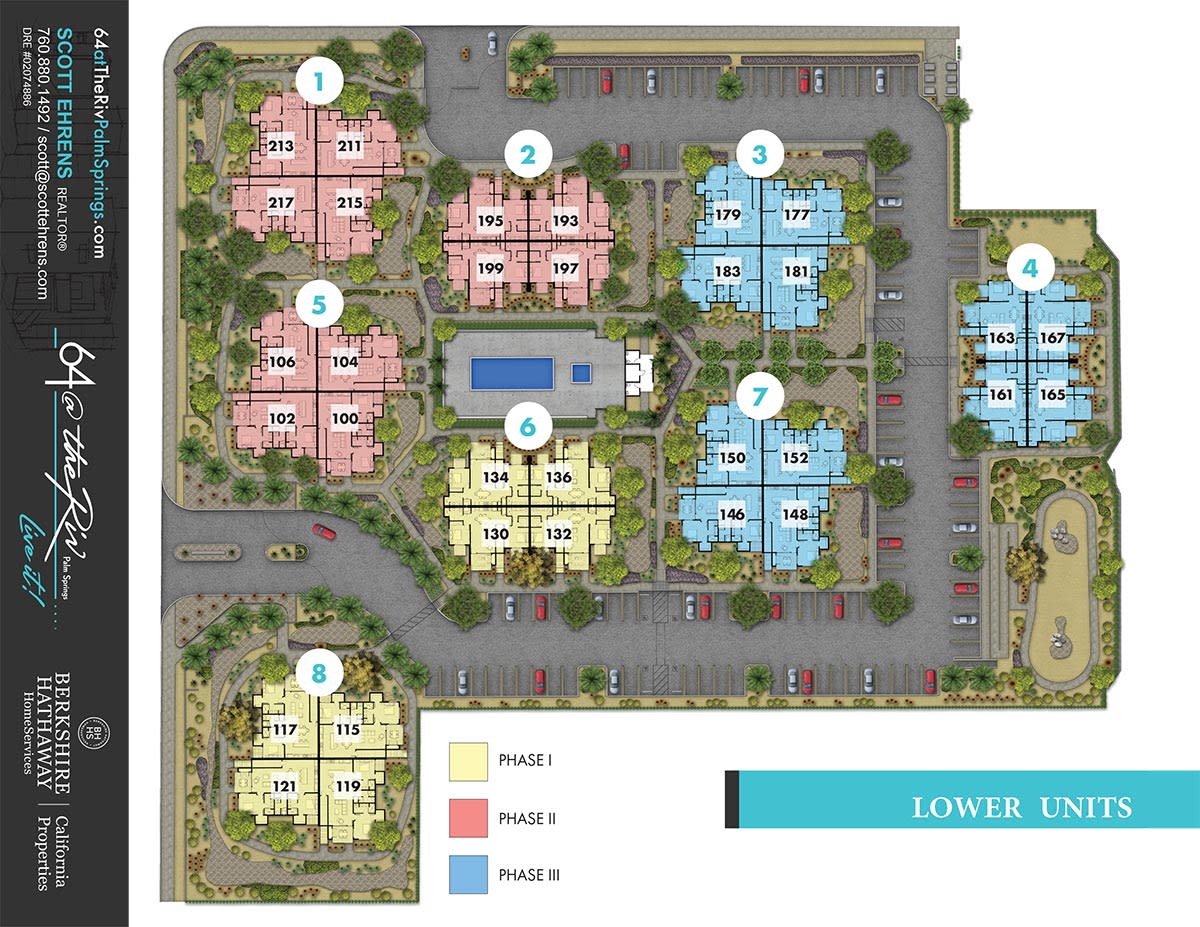 From Palm Springs Modern Homes comes 64@theRiv. Sixty-four, luxe, solar ready condominiums showcasing modern elements with a nod to mid-century designers featured throughout the community.
