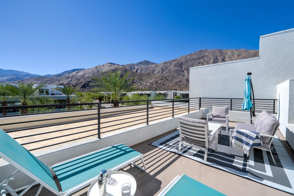 Newer construction, upgraded finishes, excellent mountain views, generous living spaces, and ample storage -- this 3-bedroom, 4-bath, 3,251-square-foot home at Cody Place offers all this and more. The open-concept main living area impresses with fresh white, ceiling-height cabinetry, an oversized white quartz kitchen island, a walk-in pantry, and an expansive balcony framing dramatic mountain views. The entry level features a large entertaining area--perfect for families, gatherings with friends, or even a home office--with a private guest entrance. Guest bedrooms and a guest bath are located on the second floor. The top floor completes the experience with a spacious primary suite and two balconies that capture the magic of the San Jacinto Mountains. Located within the gated community of Cody Place, residents enjoy resort-style amenities including a clubhouse, pool, spa, and BBQ area. Fully owned 5.6 kW solar. Sophisticated, modern--very Palm Springs. Schedule your private showing today.