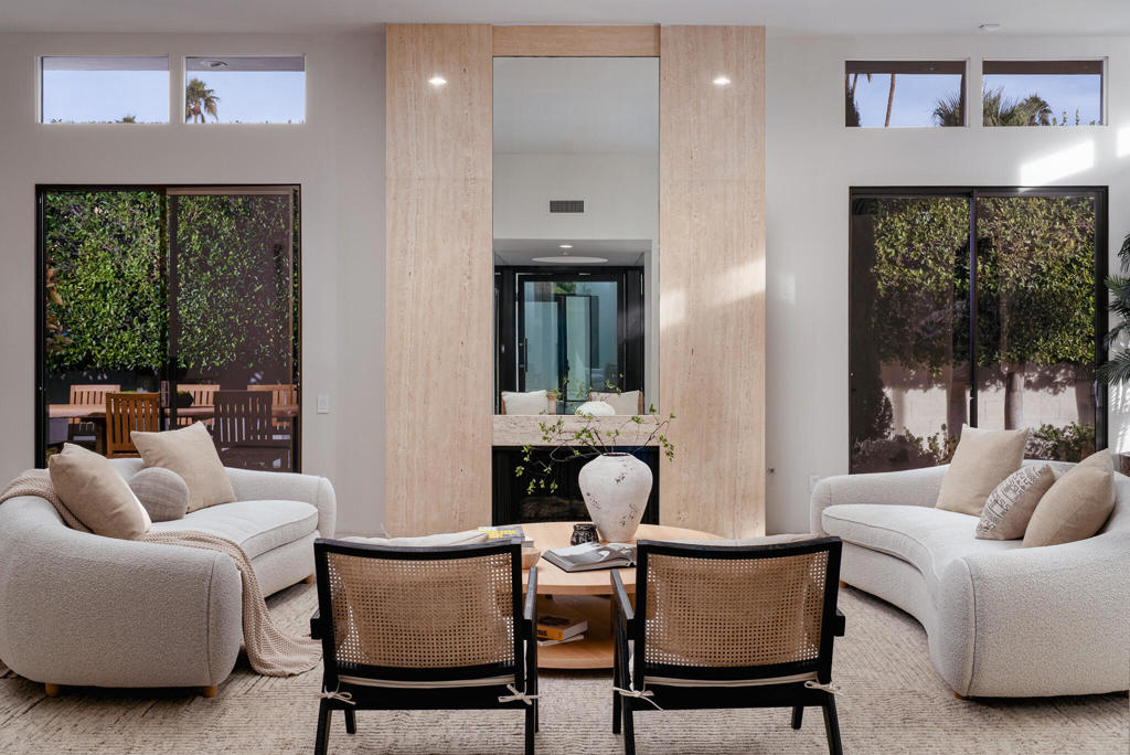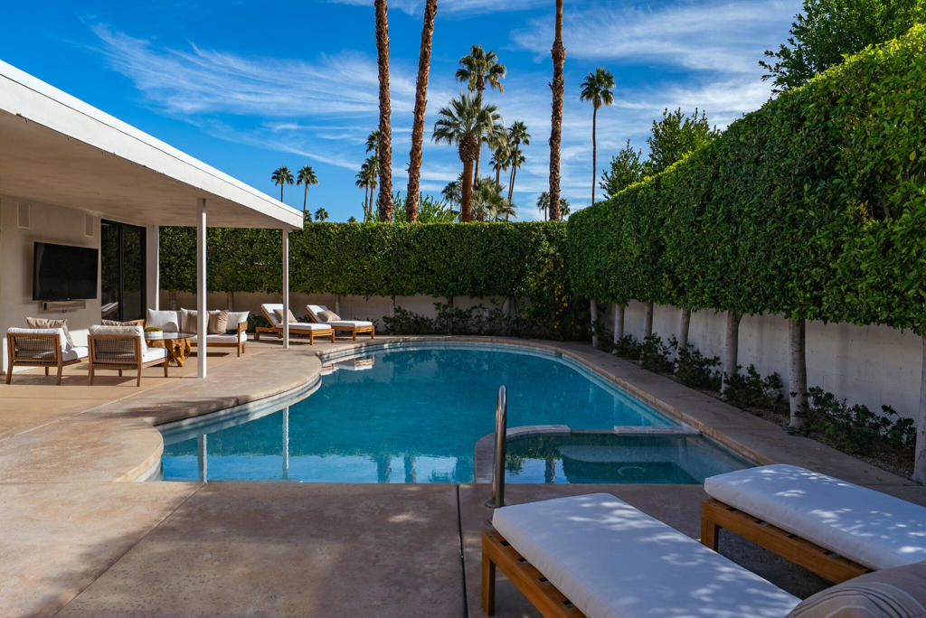 Modern desert oasis on fee land in the coveted Indian Canyons neighborhood. Featured in Architectural Digest in 1980, this 3,120 sq ft custom residence was designed to celebrate light, space, and seamless indoor-outdoor living. Clean architectural lines, sun-filled interiors, and a calm, confident modern presence are complemented by crisp white finishes, generous volumes, and contemporary finishes that create a refined yet relaxed desert aesthetic throughout.A dramatic formal entry sets the tone. A glass-screened entry courtyard opens to a covered walkway punctuated by circular roof cutouts that flood the space with natural light, leading to a pivoting clear-glass front door. Inside, the floor plan unfolds with intention--living, dining, and entertaining spaces arranged to feel open yet well defined, with clear sightlines to the outdoors and an abundance of sliding glass doors connecting to patios and pool areas.The living and dining spaces are expansive and gallery-like, ideal for entertaining, while maintaining a sense of ease and livability. Original Hollywood Regency details, including select cabinetry and bathroom fixtures, add character and warmth, thoughtfully balanced with modern updates such as a smooth stucco exterior, and large-format tiles that keep the home feeling current.Outdoor living is a true highlight. A charming side-yard dining courtyard evokes the intimacy of an Italian village, offering a distinctive and inviting setting for alfresco gatherings. Beyond, a large midcentury-style pool anchors a well-curated leisure area positioned to capture coveted southern views of the San Jacinto Mountains, creating a serene backdrop for both relaxation and entertaining.The home offers three spacious bedroom suites and three-and-one-half baths. The primary suite is generously scaled, with space for a sitting area or home office, and opens directly to the pool and outdoor shower. The primary bath includes two large walk-in closets. Both primary and secondary baths include radiant heated floors. Other features include a travertine clad fireplace, Sub-Zero refrigerators throughout including two full sized wine fridges, 58 solar panels, full California closet build outs in all bedroom closets, and meticulous desert landscaping.A rare opportunity to own a fee land home in Indian Canyons, one of the most sought-after neighborhoods in Palm Springs, showcasing timeless midcentury architecture and seamless indoor-outdoor living.
