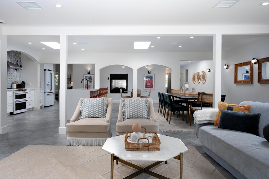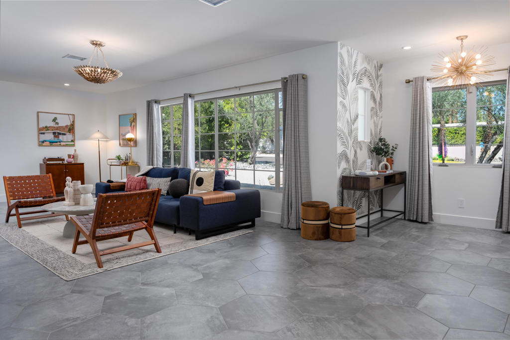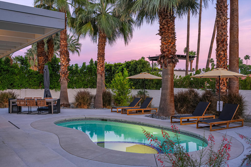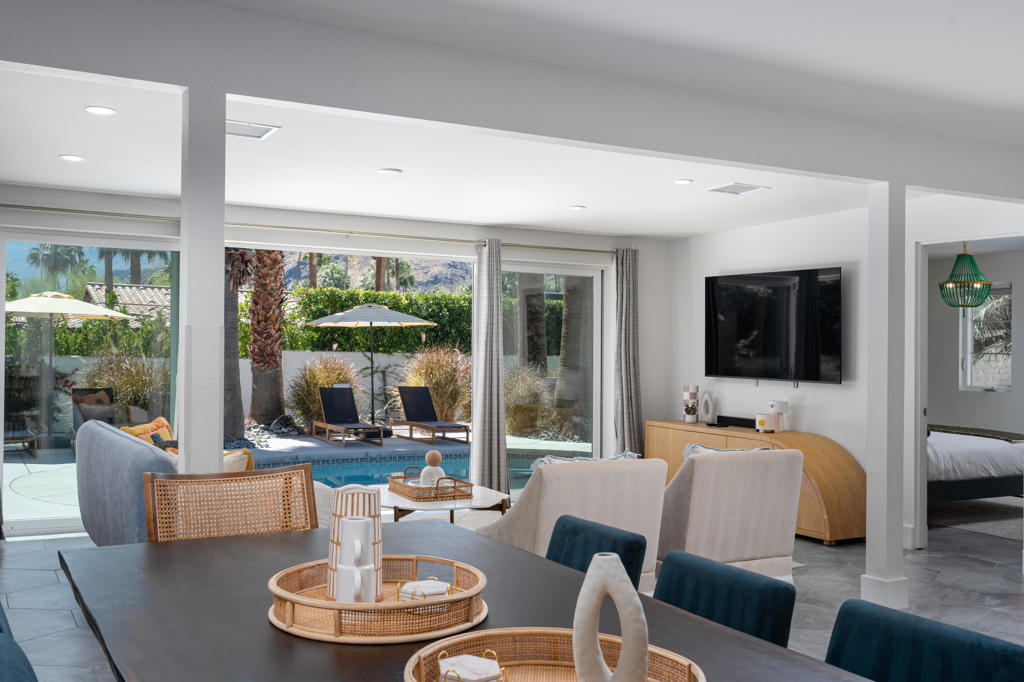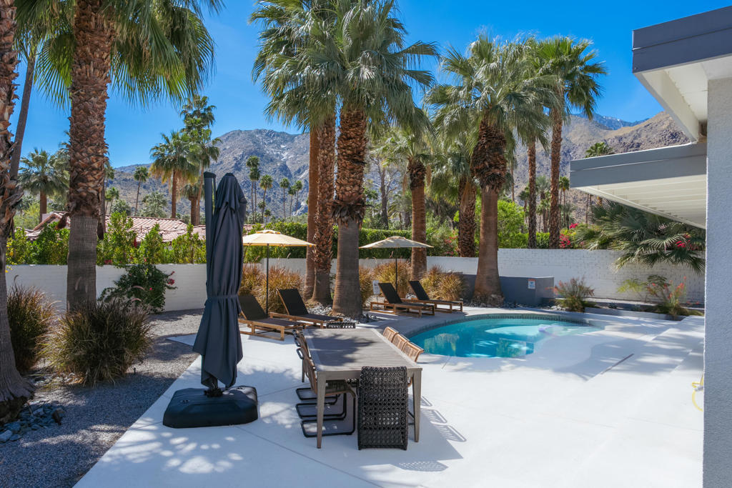 Vista Las Palmas. South-facing mountain views. Fully furnished. Extensively rebuilt--with strong indoor-outdoor flow, privacy, and a clean, design-forward finish.Set on fee land in one of Palm Springs' most iconic neighborhoods, 353 W Via Sol has been thoughtfully reworked for effortless desert living. The interiors are open and light-filled, with a layout that creates generous communal spaces while maintaining separation between the bedroom suites. A large great room anchors the home and connects seamlessly to a social kitchen with updated appliances and ample room to gather.The outdoor program is a true focal point. A rebuilt pool and spa are surrounded by multiple lounging and dining areas, a firepit lounge, and mature, curated landscaping that creates privacy while framing magnificent mountain views. The orientation captures the San Jacinto mountains in a way that feels immediate and ever-present, while the walled setting keeps the experience intimate and resort-like.Four well-proportioned bedrooms offer flexibility for guests, owners, or rental use, supported by a floor plan that balances privacy and connection. The home is offered fully furnished with a cohesive, design-forward sensibility--right down to the details that make the home feel complete from day one.Other features include 40 panels of owned solar, new HVAC, roof, water heater, and updated electrical, along with an outdoor shower and multiple covered patios for year-round use.Originally built in 1950 and passed down through the same family over generations.A fully realized Vista Las Palmas property--updated, furnished, and dialed, in one of Palm Springs' most desirable neighborhoods.