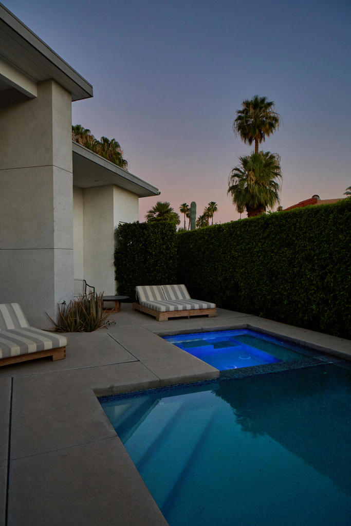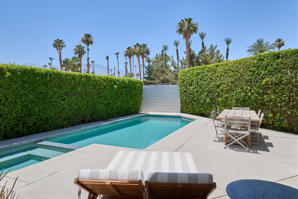 Located in the historic Tamarisk neighborhood of Rancho Mirage, just steps from the pedestrian gate to Tamarisk Country Club, on a secluded circle, this newer construction modern home offers the refinement and privacy of Tamarisk's greater estates. The was reimagined by renowned interior designer Darren Brown, who also created the interiors at the nearby Ford Estate. Butterfly roofline that vaults upward toward the mountain for optimal views. Built in 2017 and remodeled in 2023. Originally three bedrooms, it now boasts two ample bedroom suites each with walk in closets, and a serene and well designed den for TV and lounging. The main living space is incredible, and flows directly from living room and primary suite to the large private pool and spa, hedged and walled for maximum privacy. Perfect for those seeking a smaller footprint in their favorite neighborhood without sacrificing the privacy of a single family home, or the elegance found at the multi million dollar price points. This opportunity is rare. No HOA. Call today for a private showing.
