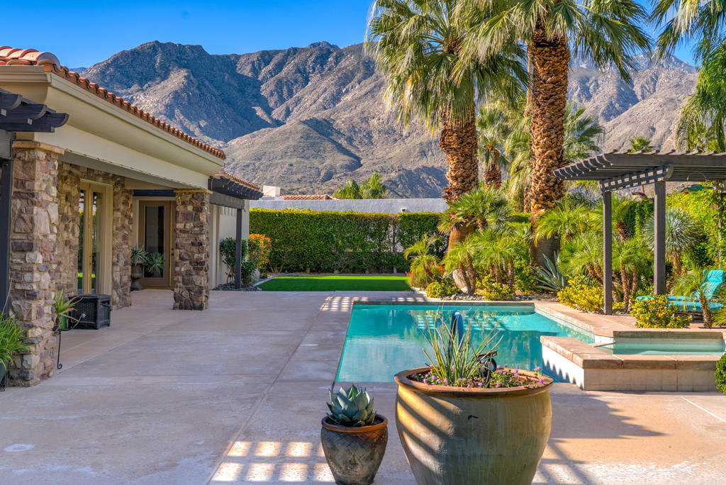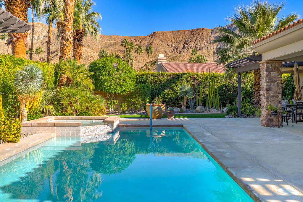 Located in the gated community of Parc Andreas, this 4-bed, 5-bath home offers 3,624 sq ft of generous living space on a private .35-acre lot. The floor plan features formal living and dining, a spacious great room, and multiple doors that open to the pool, spa, and mountain views. All bedrooms are ensuite, including a large primary suite with garden access. High ceilings, flooded with natural light. Excellent storage in 3 car garage including two walls of cabinets. A rare opportunity to own in Parc Andreas, one of south Palm Springs' most sought-after neighborhoods.