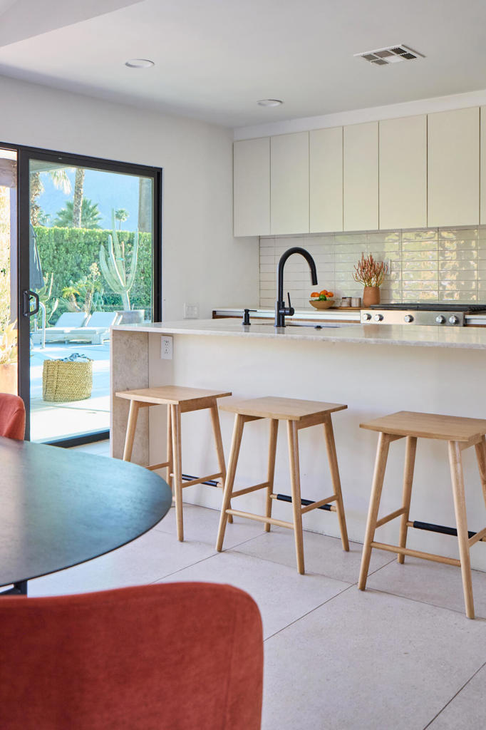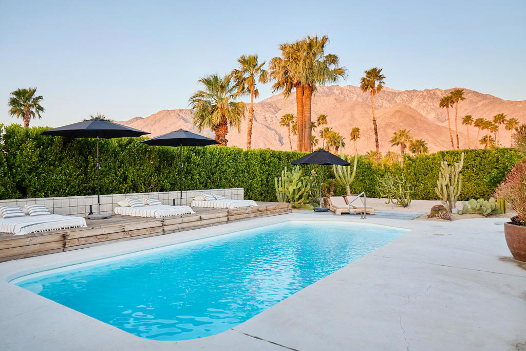 There is nothing else like this on the market today. The kind of yard you see in multimillion dollar homes. South-facing with extraordinary mountain views. Fully hedged for privacy. Raised poolside deck and large covered patio for outdoor dining. Concrete block outdoor fireplace with raised hearth and lounge area. Separate inground spa just steps from the primary. All with impeccable design. And we're only talking about the yard thus far. The taste level of the interior is exceptional. Warm neutral tones with an emphasis on light and volumes. The kitchen and baths have been fully remodeled. The flooring is large format ceramic tile with a limestone look throughout. The heart of this home is the vaulted great room which is perfect for indoor/outdoor entertaining. The primary suite is sexy with great views and faces the backyard leisure area. Solar is already installed. A listing this good at this price point doesn't come frequently. And futher, it comes fully furnished. Call today for your private showing.